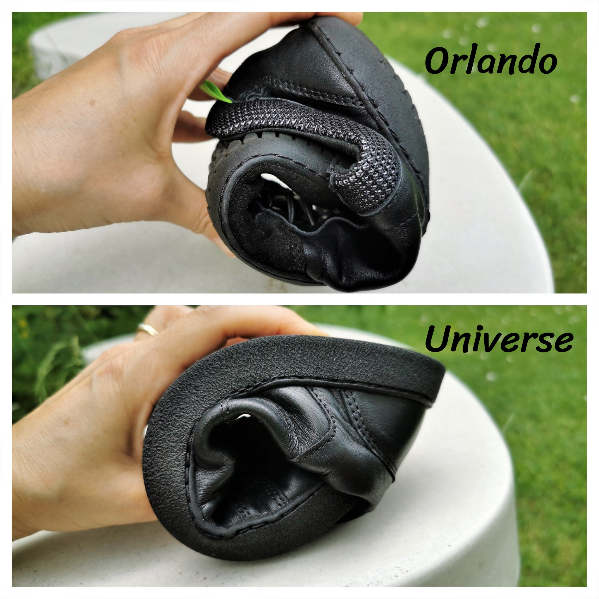 A Universe érezhetően merevebb, az oldalán és a talpában is, és kevesebb talajérzetet ad. Egyértelműen nagyobb volumenű lábra illik, bár szélességben az Orlando többet enged.
